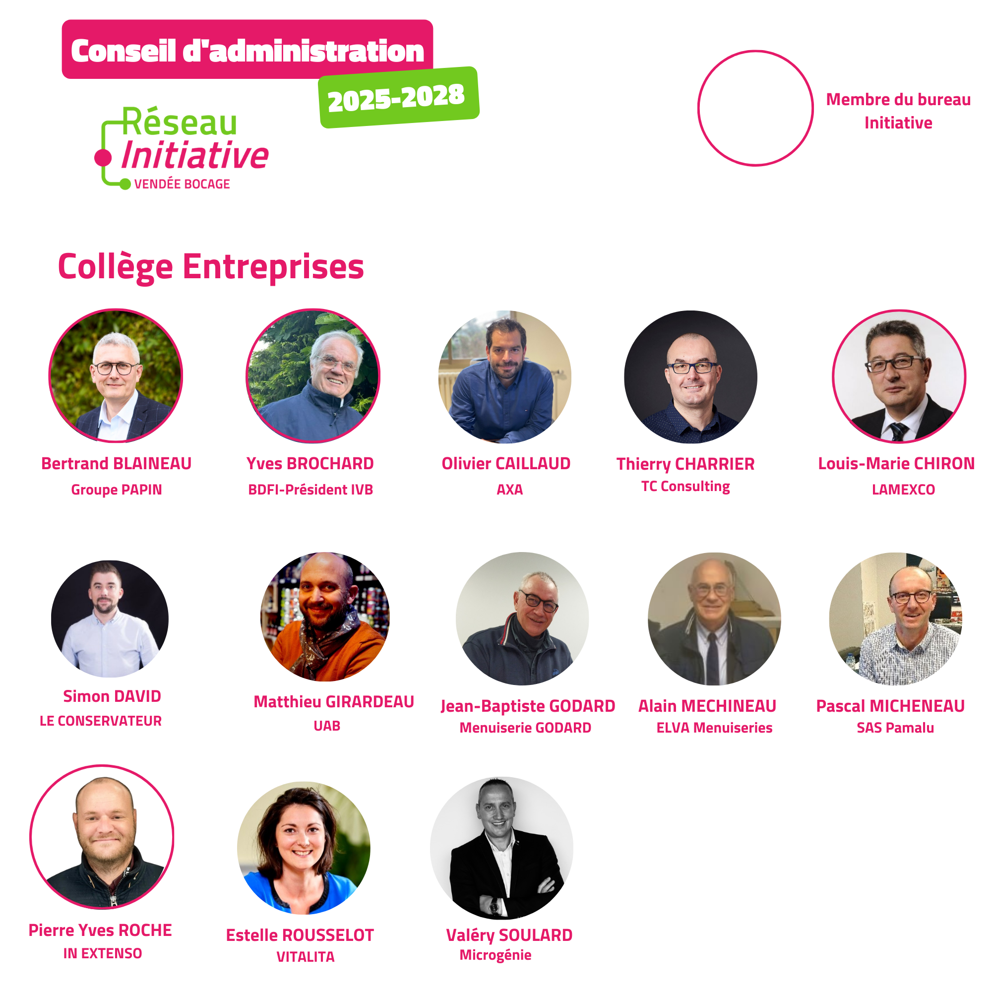 Au sein du réseau Initiative Vendée Bocage, les femmes et les hommes qui constituent la gouvernance sont chargés d’orienter stratégiquement l’association.