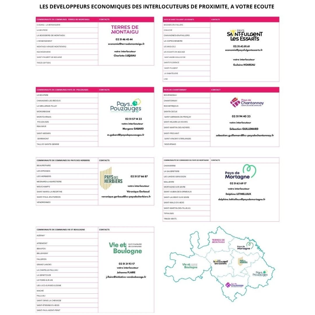 N'hésitez pas à contacter votre chargé de mission développement économique au sein de votre communauté de communes d'implantation. Celui-ci vous informera sur les projets de territoire, ses aides, axes de développement. Il pourra vous mettre en réseau car il anime le tissu économique local et le réseau de partenaires. Il gère aussi les zones artinales et bourses aux locaux. C'est un interlocuteur clé !